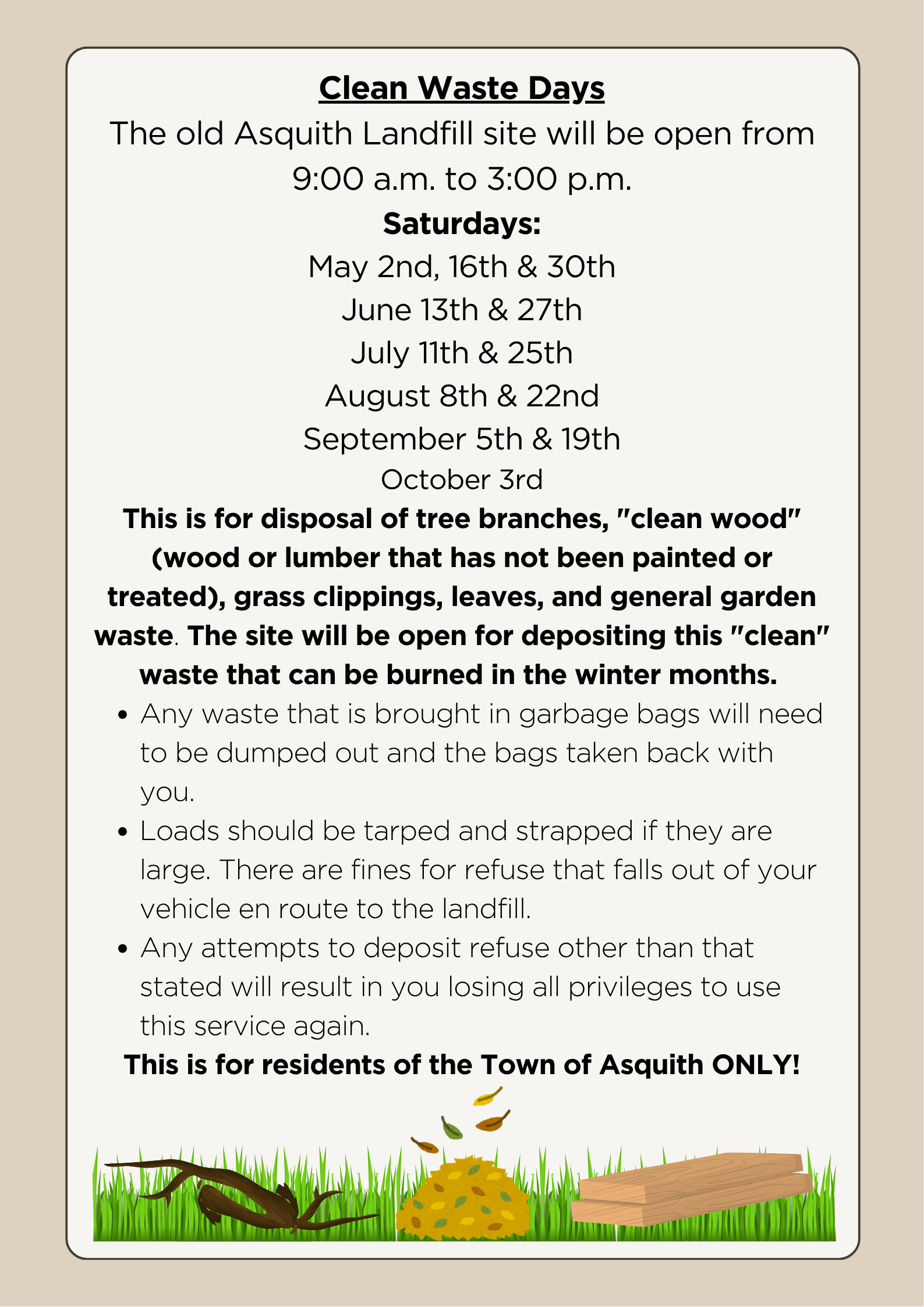 Information and guidelines pertaining to living in the town of Asquith.