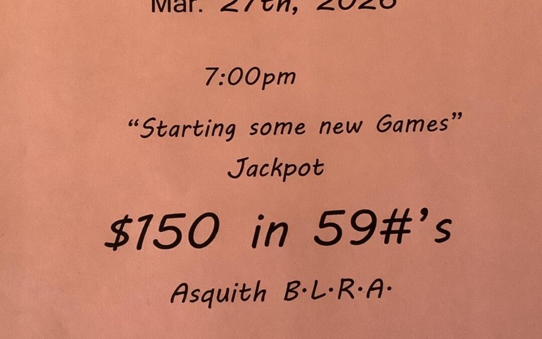 BINGO by Kaila Montgomerie | Mar 10, 2026 March 27, 2026BINGO7:00 pmAsquith Seniors Centre 515 Main Street